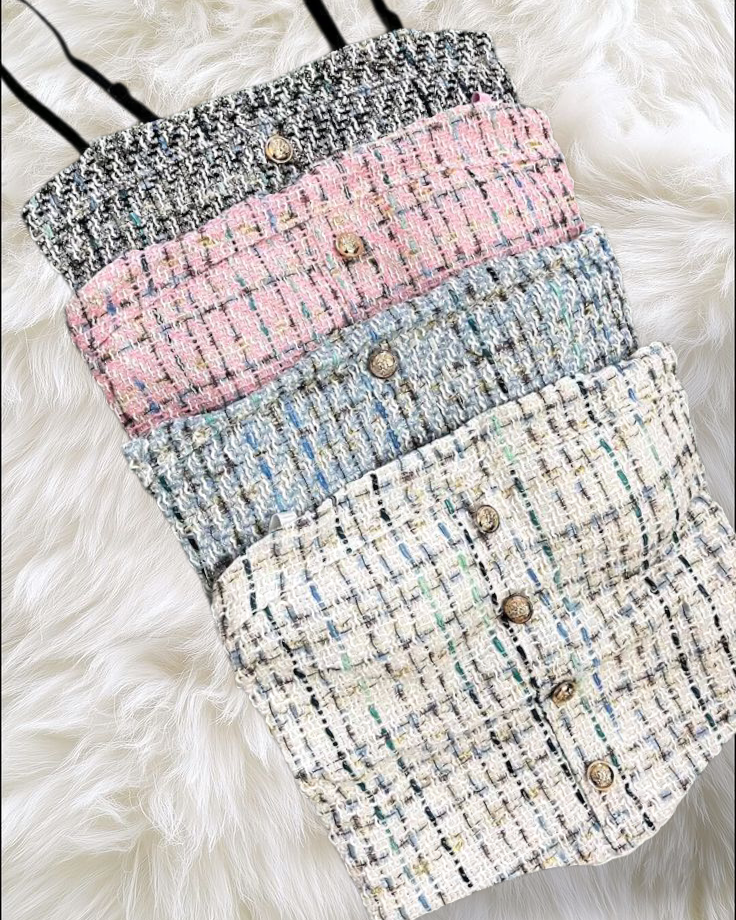 تاپ باندو بورژوا با بافت خاص تویید و دکمه‌های طلایی کلاسیکش، یه انتخاب ظریف و لاکچریه برای استایل‌های مینیمال ✨