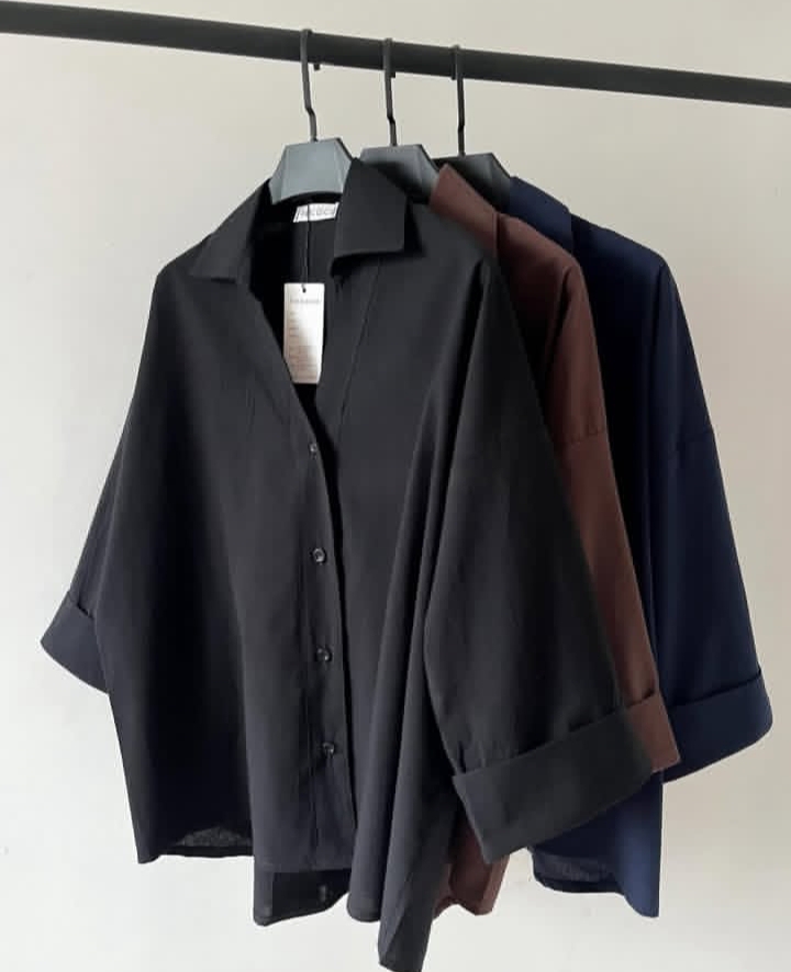 • مدل: شومیز اورسایز دکمه‌دار با آستین‌های سه‌ربع برگردان
