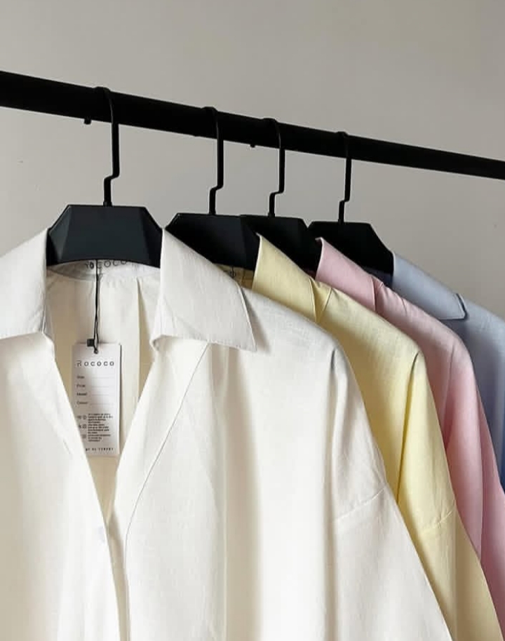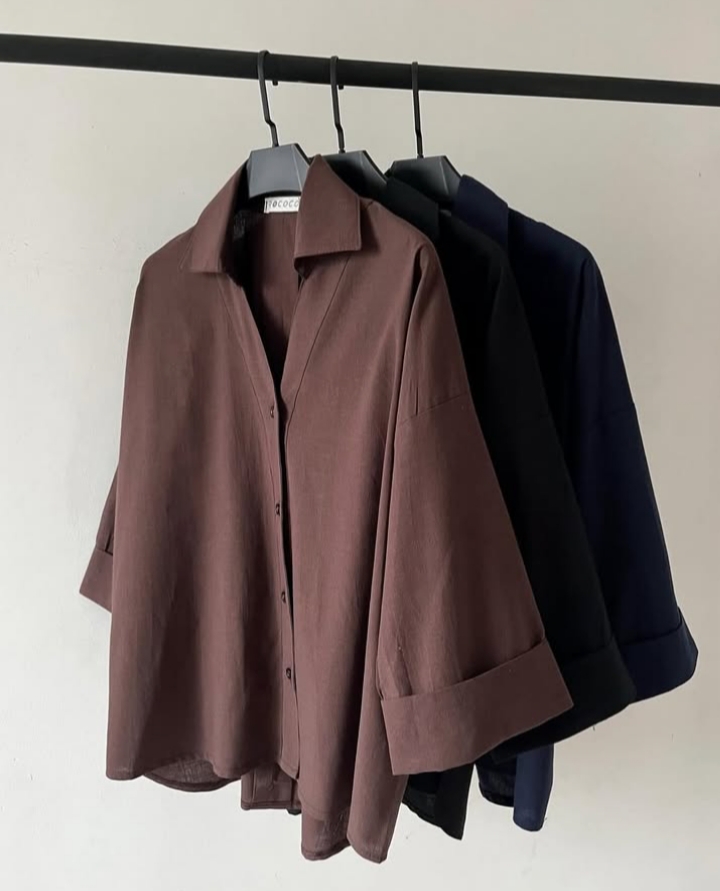 شومیز اورسایز روکُکو با طراحی مینیمال و پارچه‌ی لینن‌پنبه‌ای، حس لطافت و سبکی منحصر‌به‌فردی داره 🌿